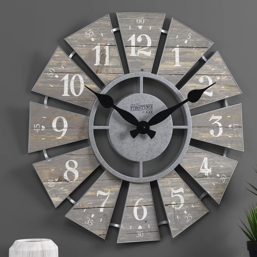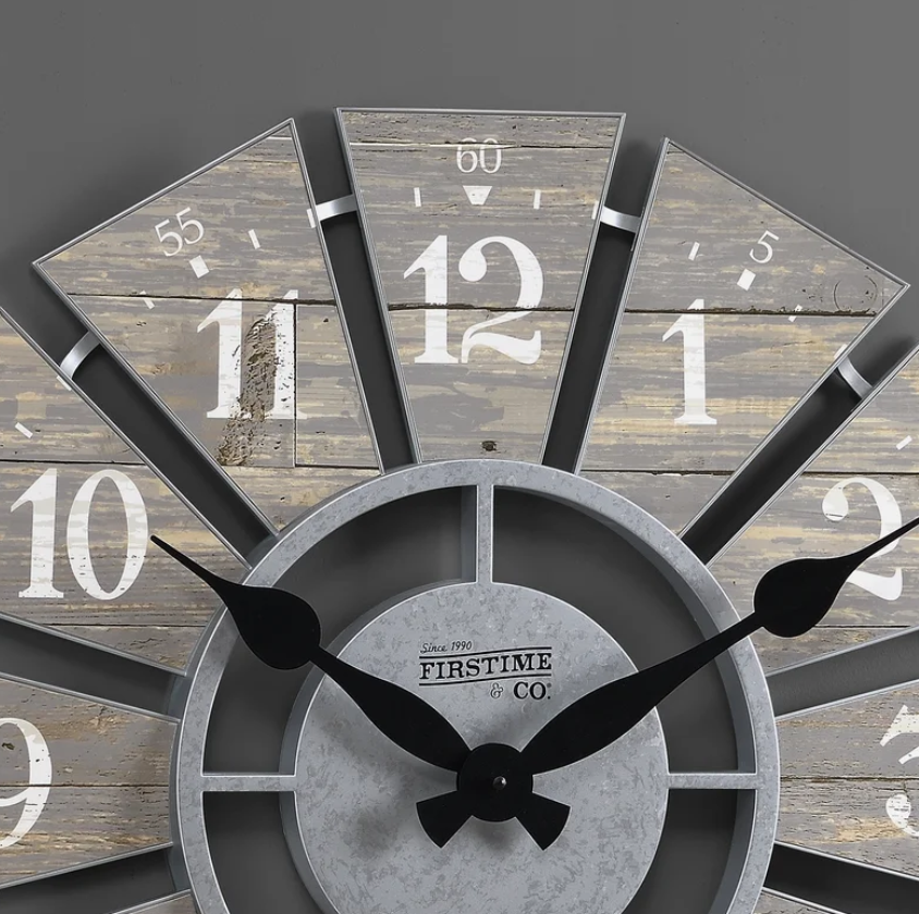 AK Brass Iron Flames Wind Mills Decorative Wall Clock Classic Home Decor Wall Ornaments