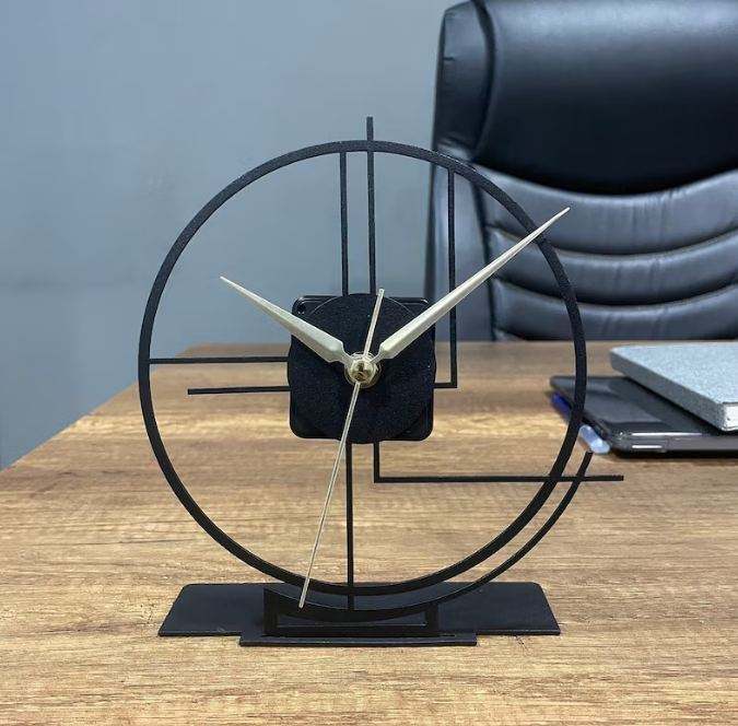 AK Brass Large Clock Hands Metal Table Clock with Stand in Black Finished Handmade Piece For Desk Decor / Shelf Decor