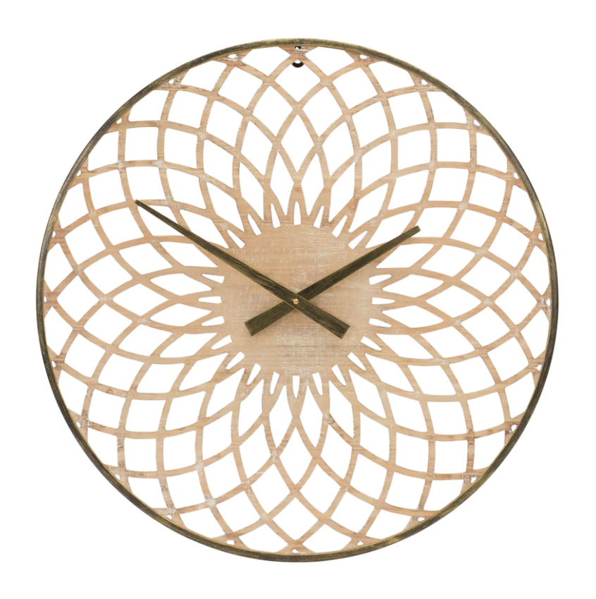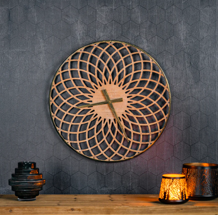 AK Brass MDF Engineering Wood Wall Clock Modern Abstract Illusion Nut Finished Wall Decor