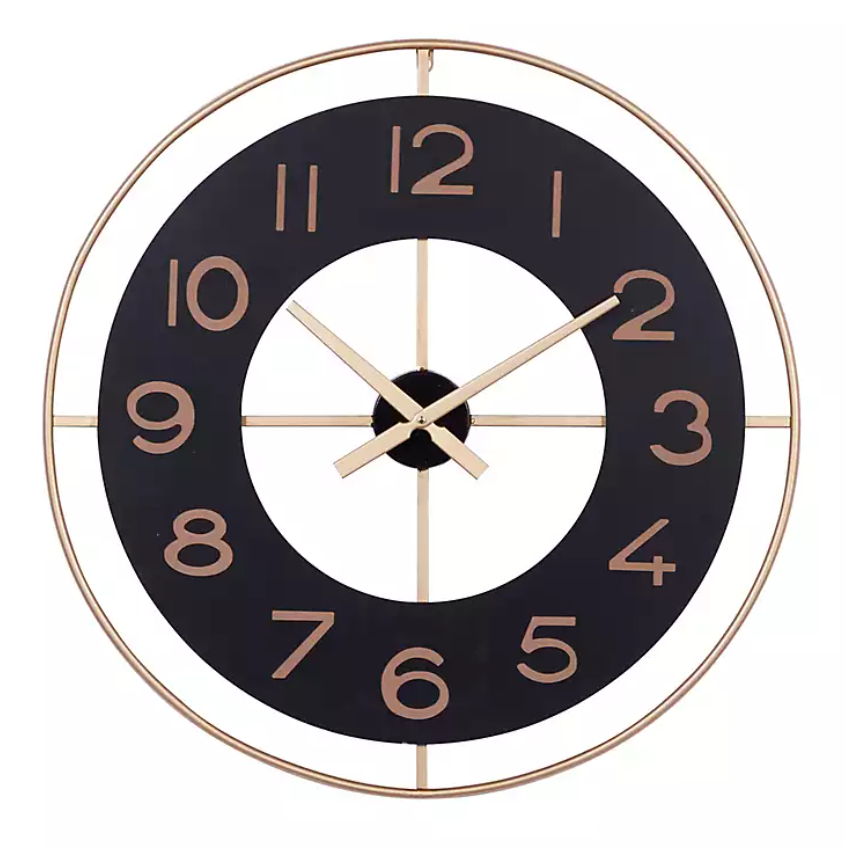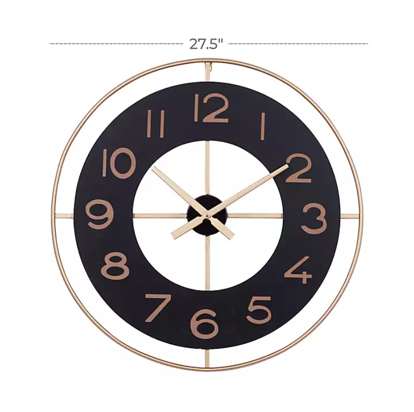 AK Brass Modern Classic Black & Golden Ring Iron Metal Wall Clock Quartz Motivity Abstract Pattern Latest Arrival Home Decor