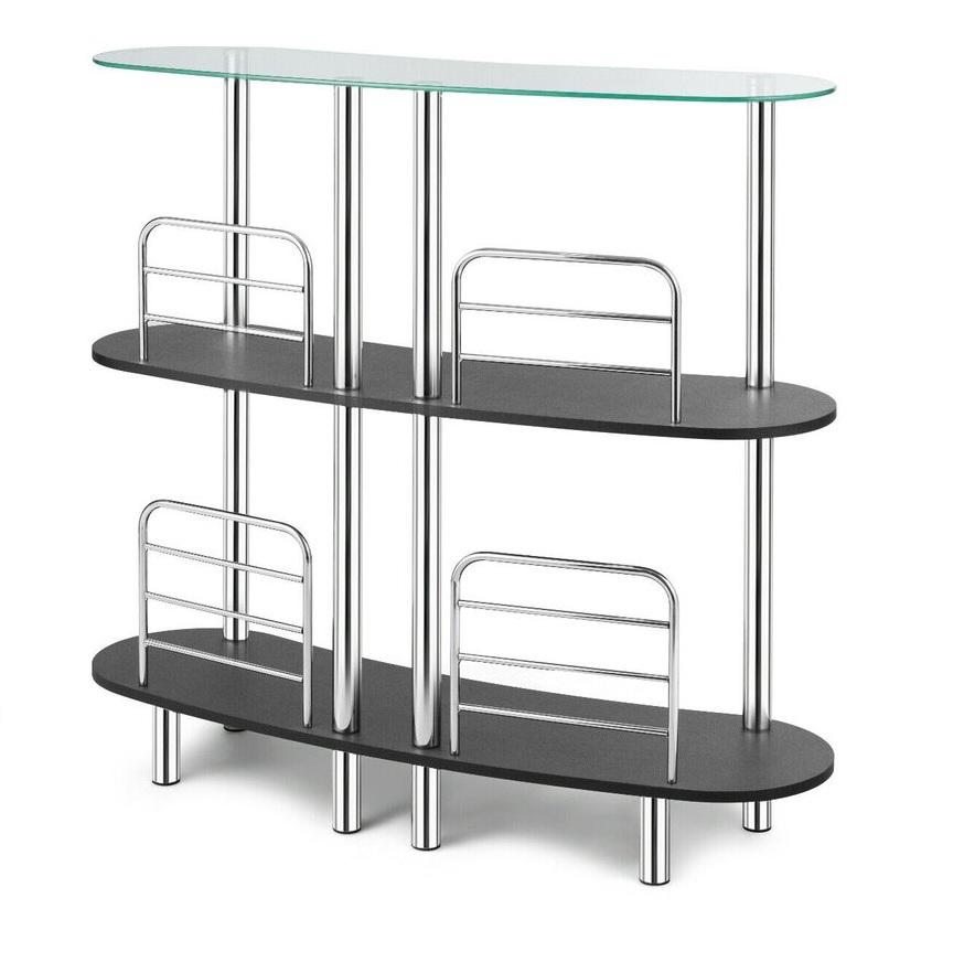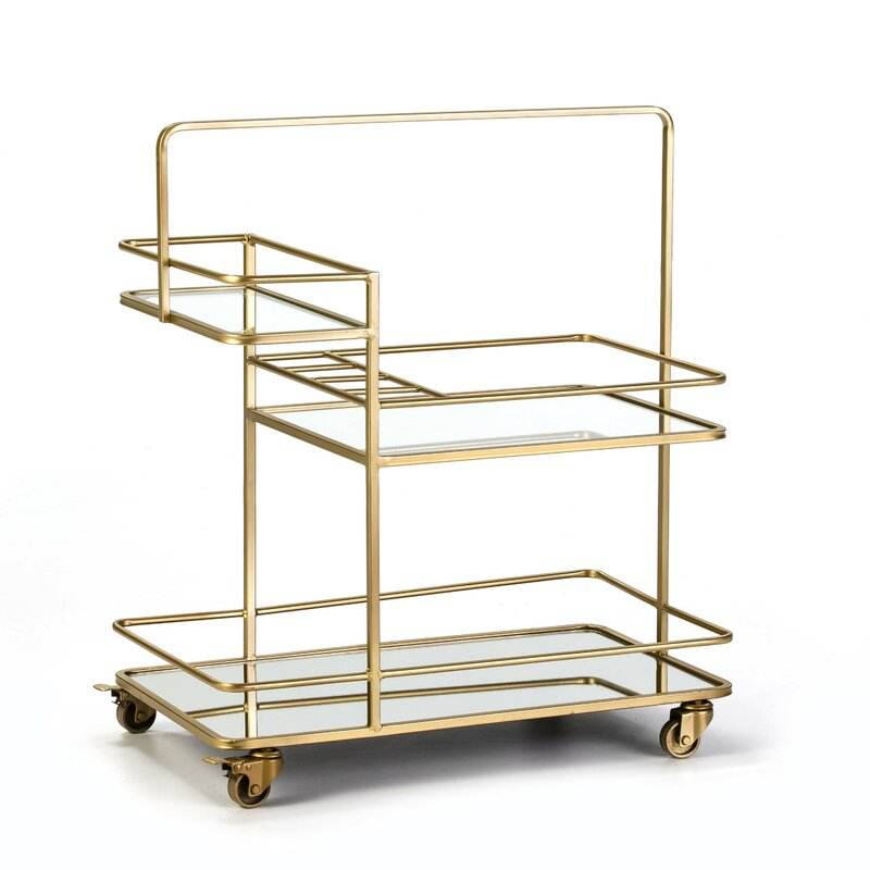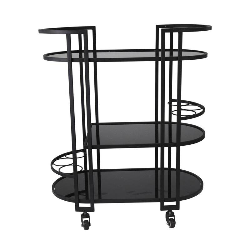 AK Brass Modern Metal Bar Carts Silver And Black Finished With Top Glass Standard Bar Cart For Hotel Serving / Bar Carts