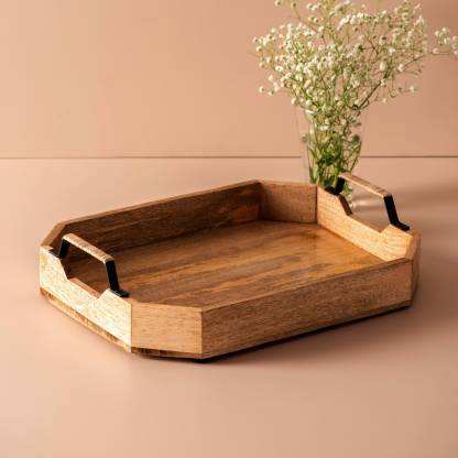 AK Brass Modern Style Wooden Serving Tray in Natural Wood Color with Metal bunny Handle For Kitchenware Ornaments / Dining Table