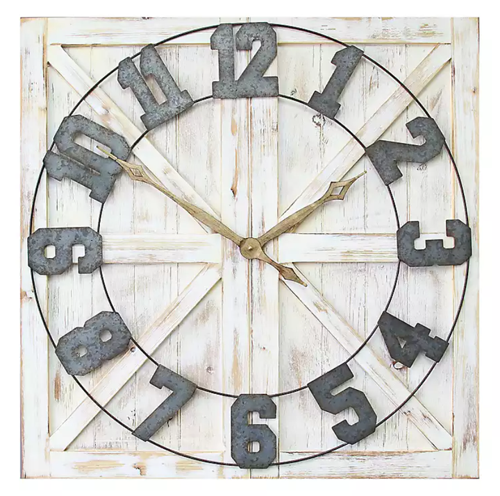 AK Brass Multi-Color Wall Clock White Wooden Home Decorative Wall Clock for Living Room Metal Material Quartz Display Needle