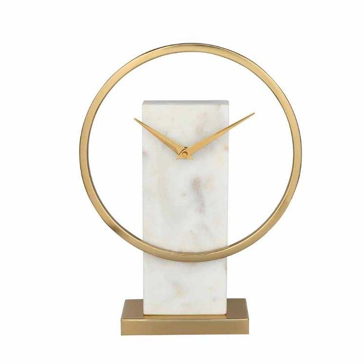 AK Brass Open Frame Marble & Metal Table Clock in Gold & White Finished Handcrafted Piece For Office Decor / Home Decor