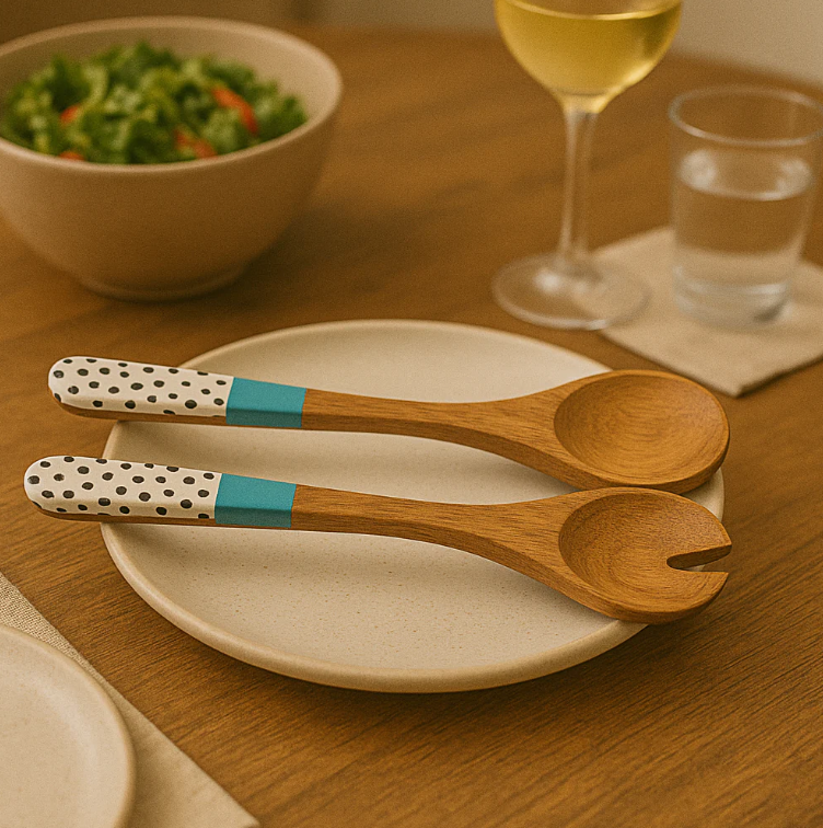 AK Brass Printed Mango Wood Spoon & Fork in Multi Color Customized Set of 2 For Dining Table & Kitchenware Item