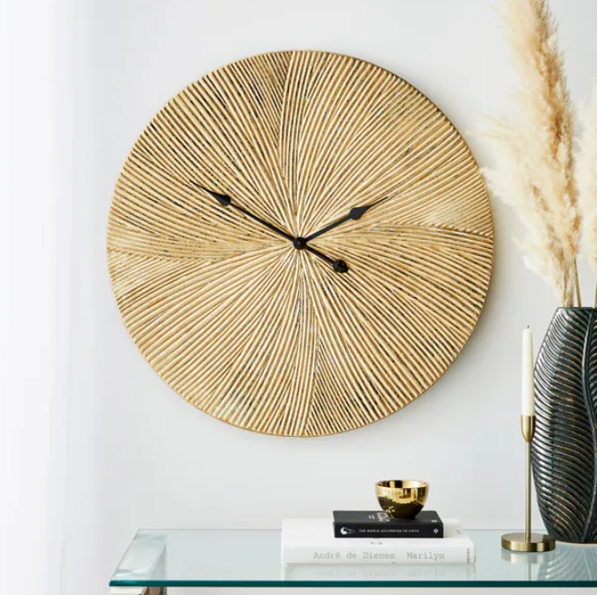AK Brass Ribbed Design Round Metal Wall Clock in Gold & Black Finished Unique Clock For Restaurant & Hotel Decor