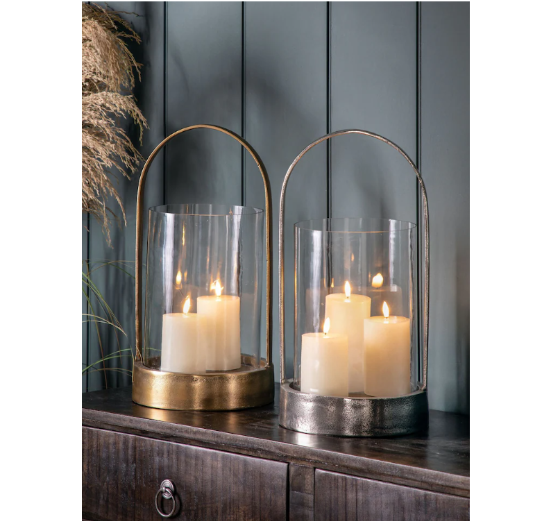 AK Brass Round Metal Lantern In Antique Finished with Glass Set of 2 Handcrafted Lantern For Home & Hotel Decor Accents