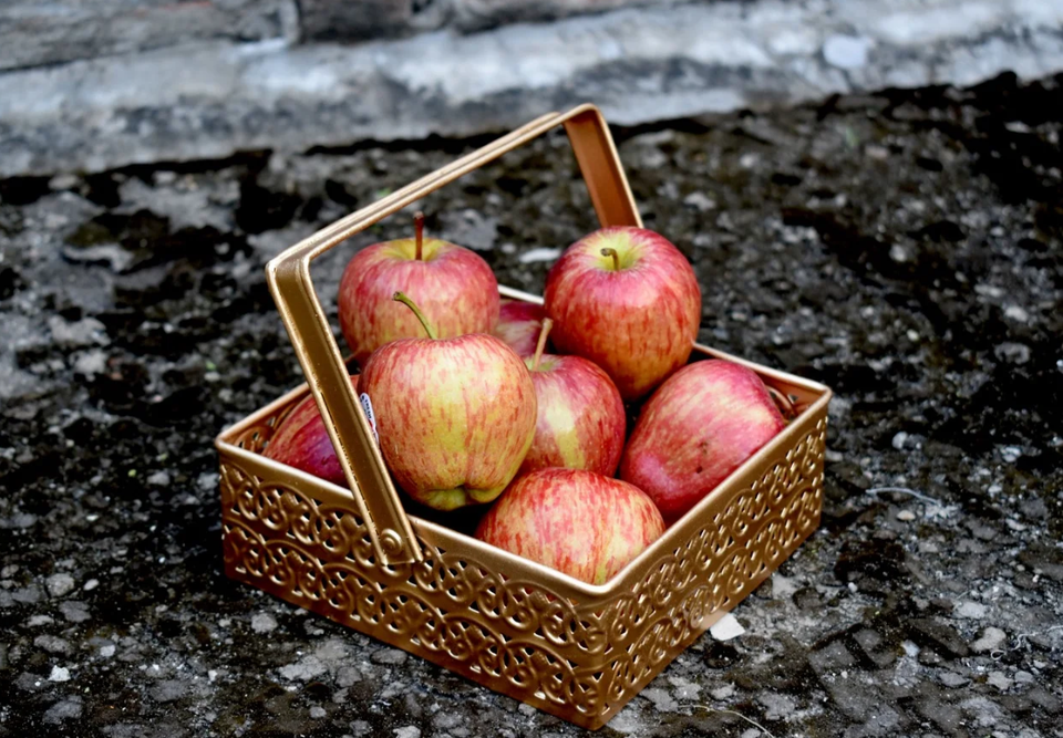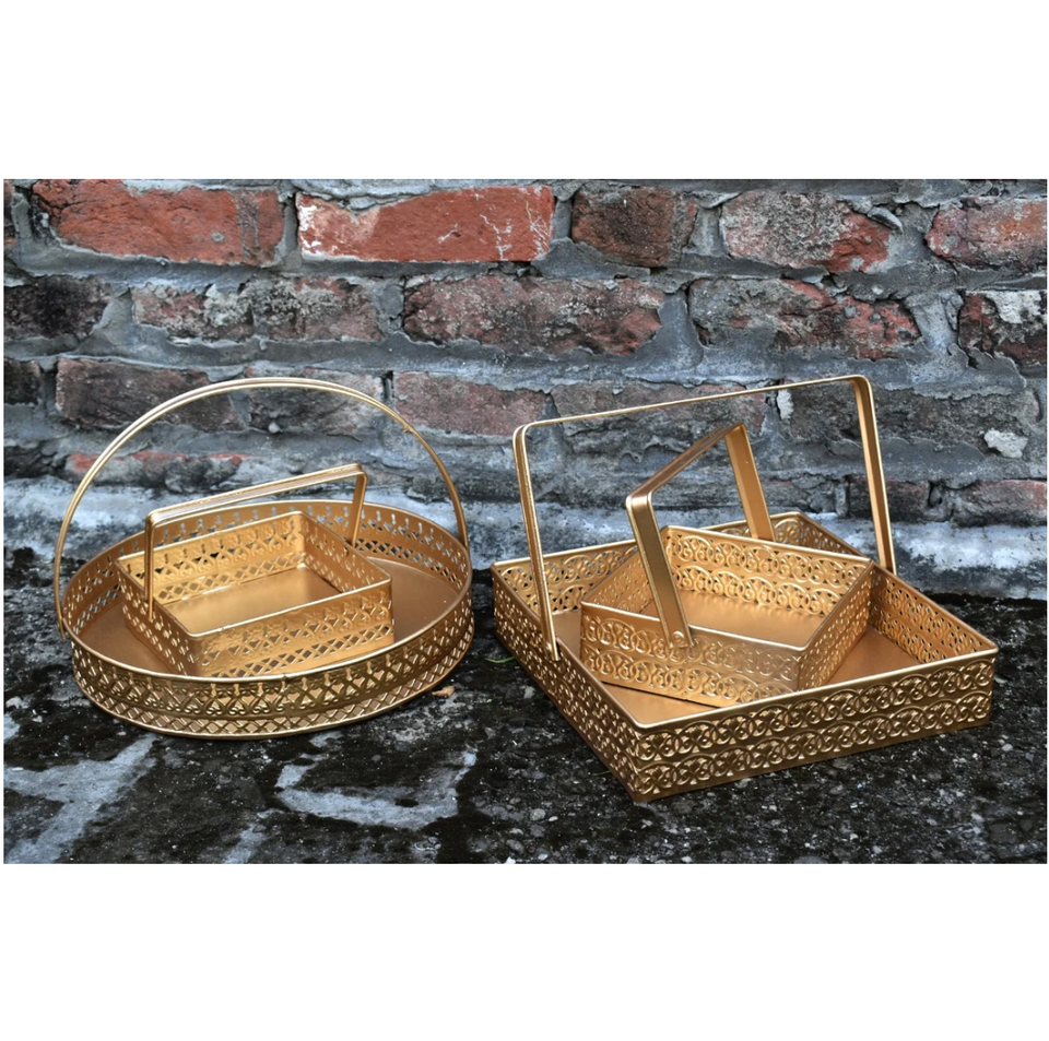 AK Brass Round & Square Laser Cutting Metal Hamper Basket with Handle in Gold Finished Set of 4 For Festival Gifting/Table Decor