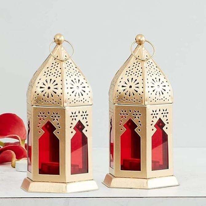 AK Brass Trending Unique Design Metal Lantern With Gold Finished Set Of 2 High Quality Candle Jar For Festival Decor Item