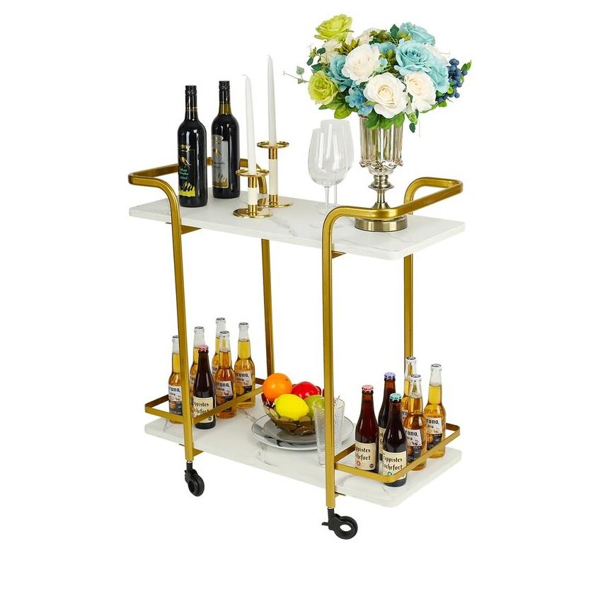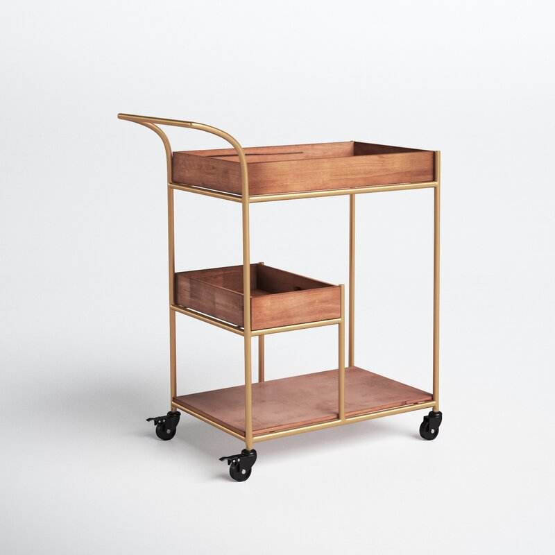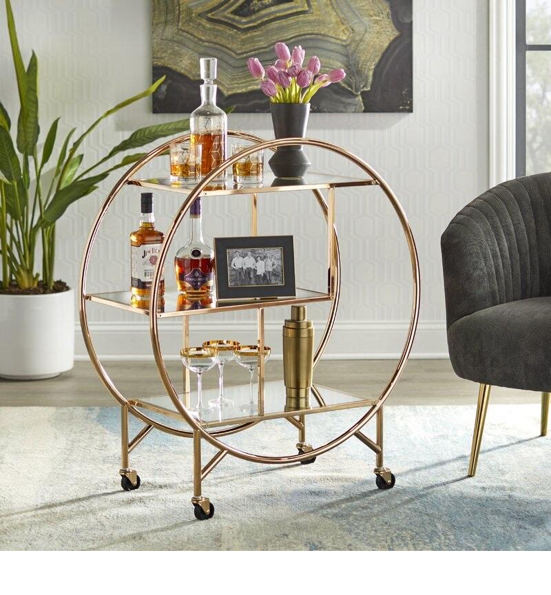 AK Brass Unique Design Metal Bar Carts Copper Finished With 2 Tier Glass High Quality Trolley Wheels For Hotel / Bar Furniture