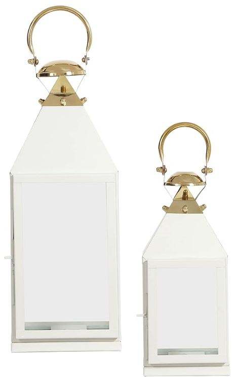 AK Brass Unique Design Metal Lantern White Color With Gold Finished Handle Set Of 2 Candle Jar For Festival Decor Item