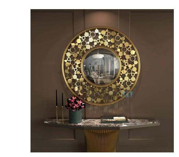 AK Brass Unique Design Metal Wall Mirror Round Golden Frame Modern Wall Mirror For Hotel Decor / Restaurant Interior Decor