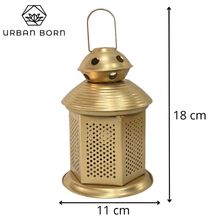 AK Brass Urban Born Metal Lantern With Gold Finished Set Of 2 Unique Design Style Candle Jar For Cafe Decor / Festival Decor