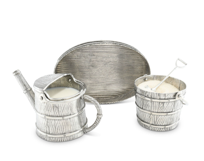 AK Brass Watering Can And bucket Sugar & Creamer Pots In Silver Antique Finished Handmade Item For Kitchenware / Tableware