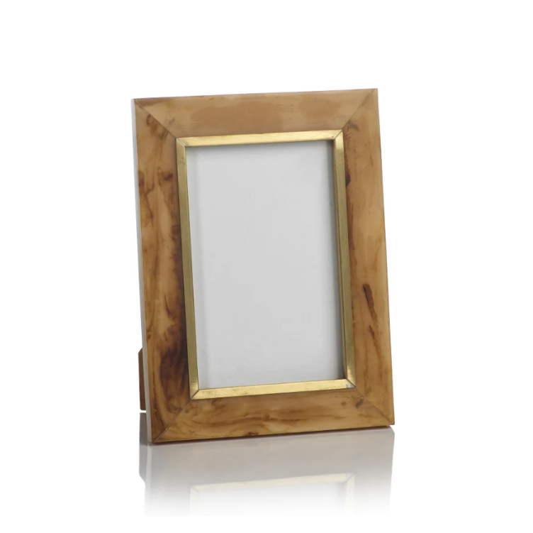 AK Brass Wooden and Metal Photo Frame in Natural Wood Color Luxury Frame For Room Decor / Table Decor Accents