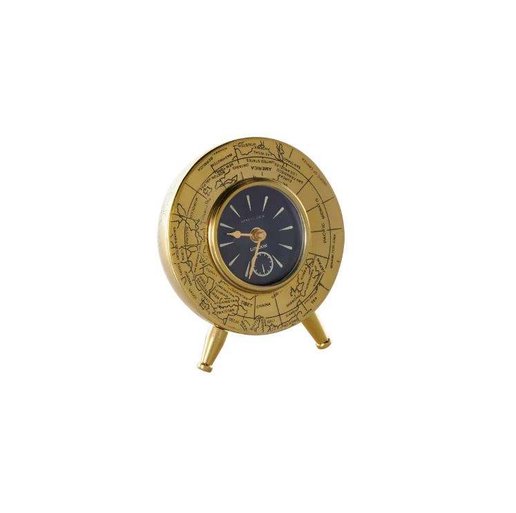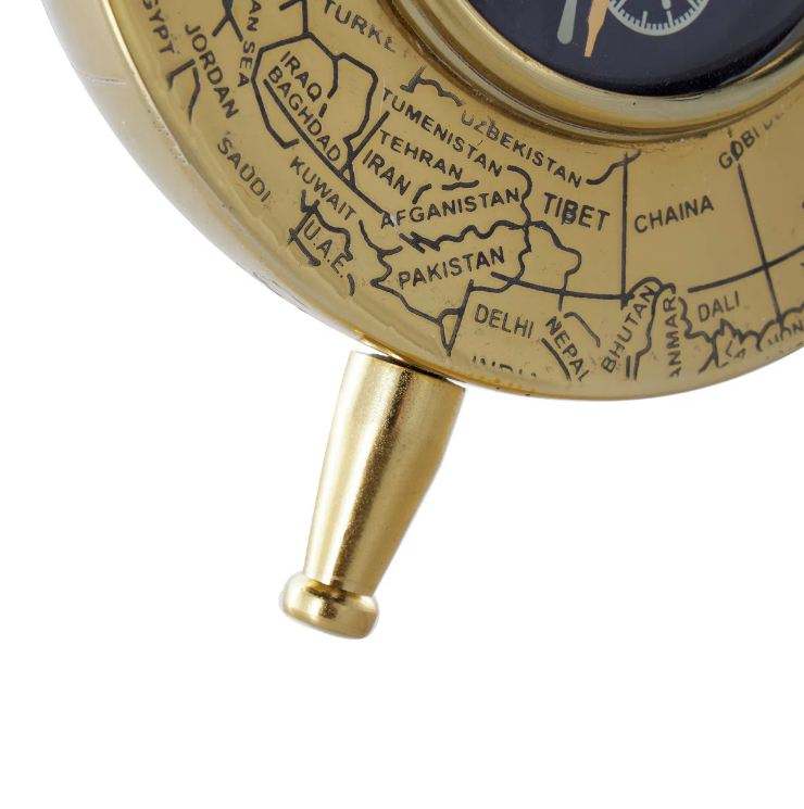 AK Brass World Map Metal Table Clock in Brass Finished Unique Design Clock For Office Decor / Home Decor