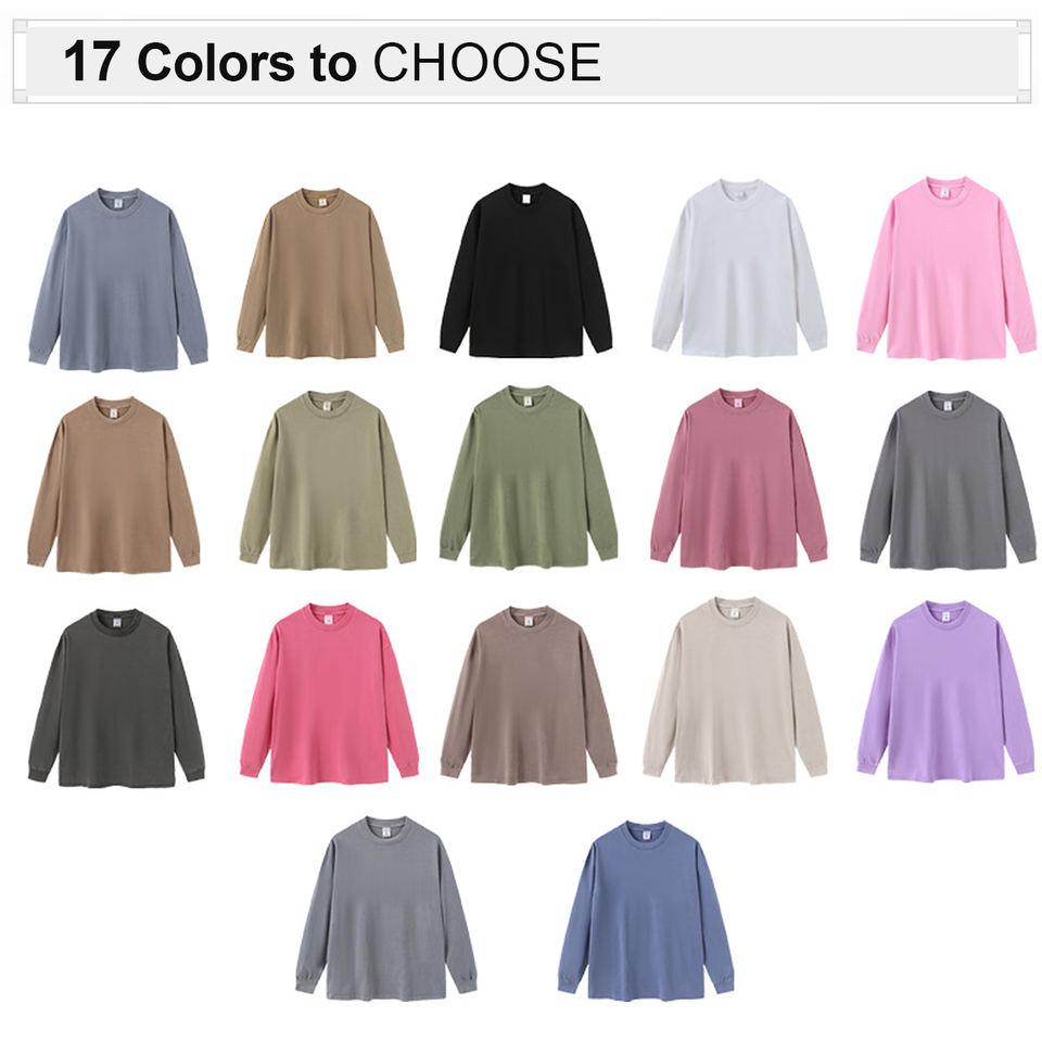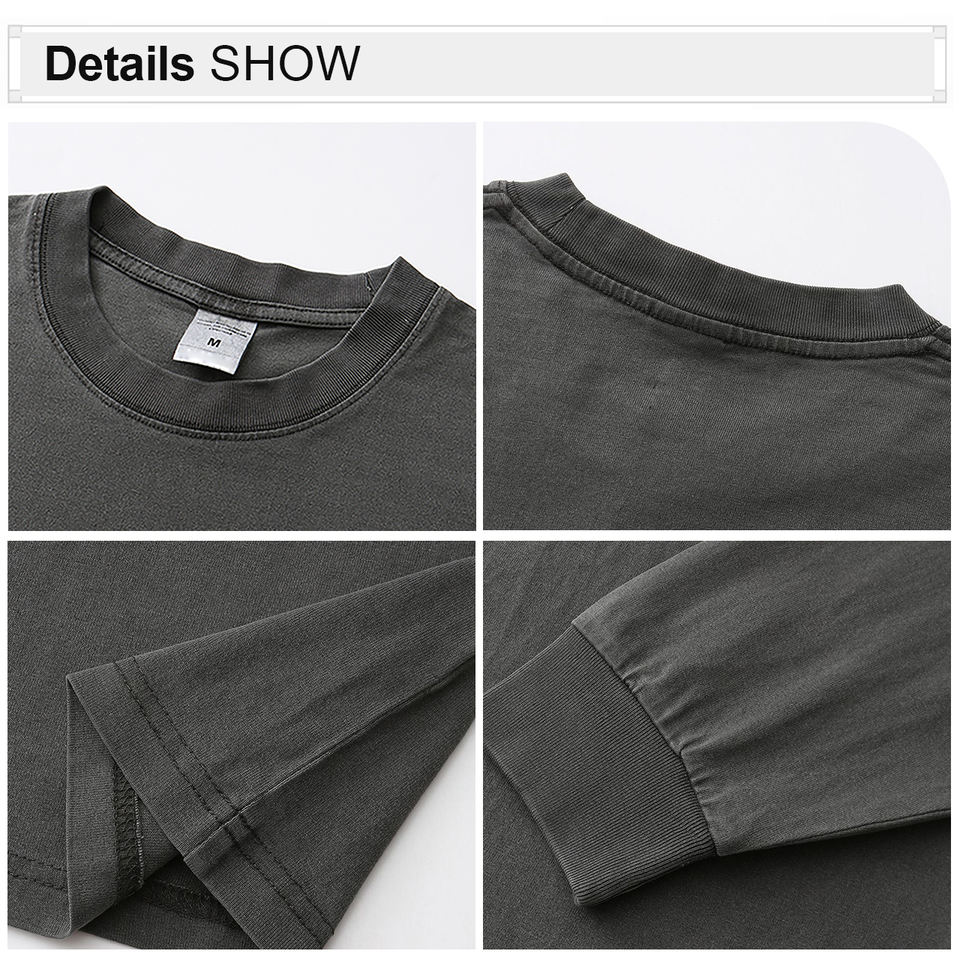 AK24 Vintage Acid Washed Oversized 100% Cotton Knitted Heavyweight Long Sleeve T-Shirt with Custom Logo for Men