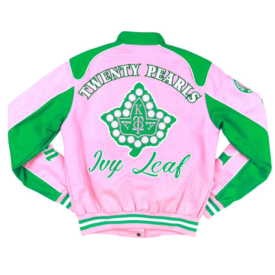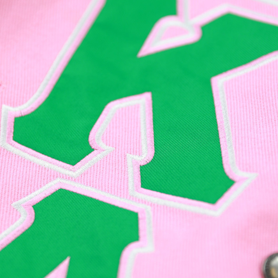 AKA Pink Racing Twill Jacket Embroidered Letterman Style Snap Button Varsity Jacket Women Premium Fashion Outerwear