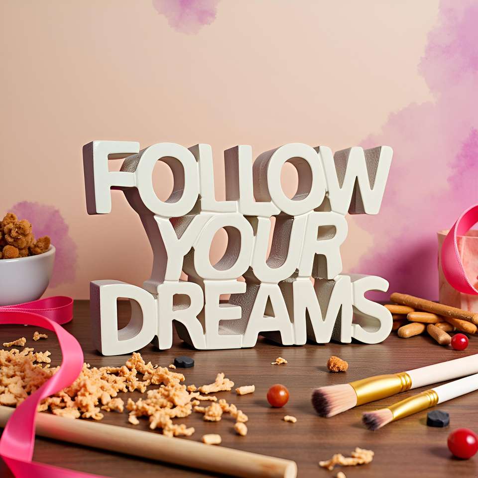 Follow Your Dreams Motivational Aesthetic Table Decorative Item for Home Study Desk Table Decor Room Decor Items White Painted
