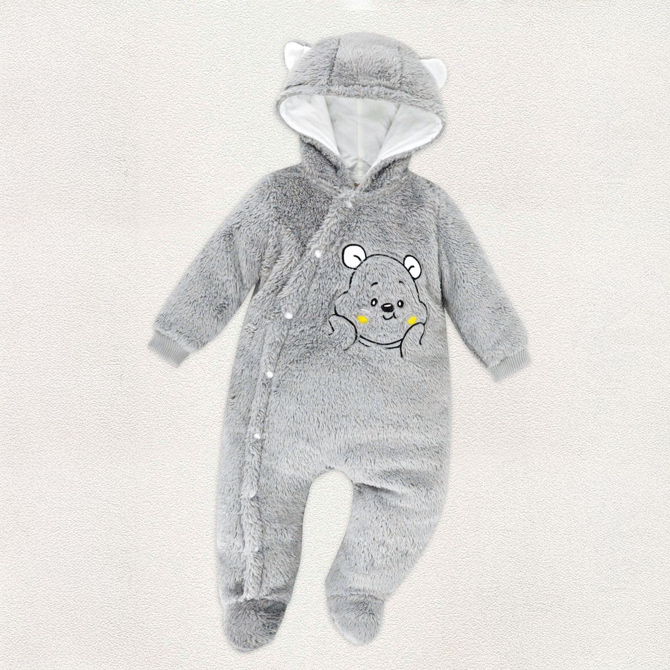 ALB25 Dokma Unisex Baby Footed Onesie Cartoon Pattern Fleece Knitted Short Sleeve Single Button