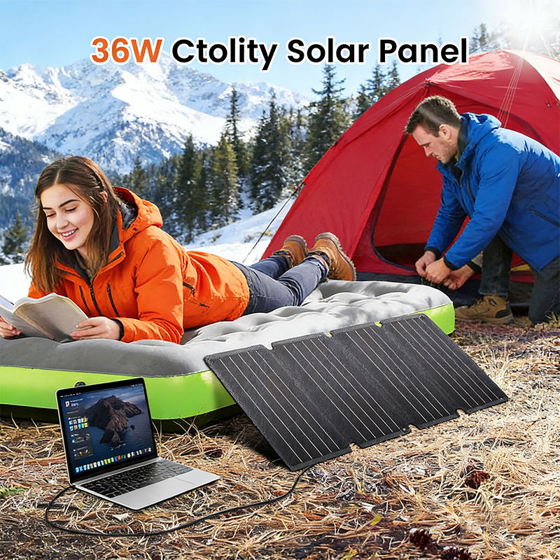 ALECTER 36W Monocrystalline Silicon Foldable Portable Solar Panel Charger IP65 Waterproof Dual Output USB-A Type-C 23% Black 12
