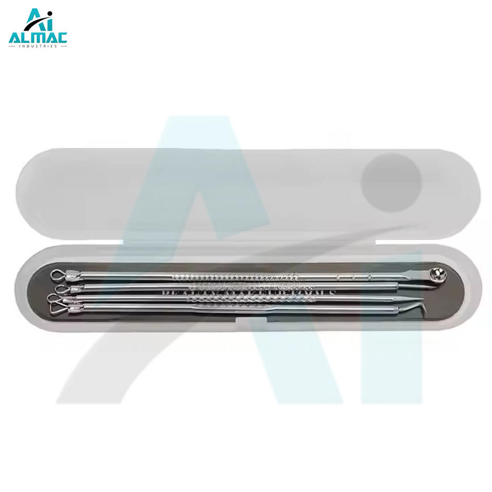 ALMAC High Quality Stainless Steel 4 Pcs Kit Acne Needle Set Comedo Extractor Blemish Removers With Case