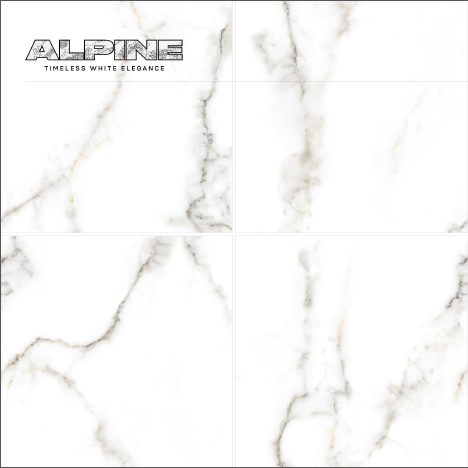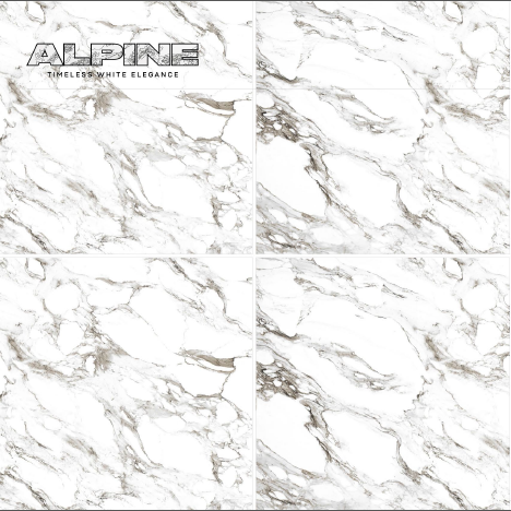 ALPINE Elegance Model-CARRARA STATUARIO 600x600mm White Ceramic Tiles Glossy Marble Wall and Floor Application Novac Ceramic