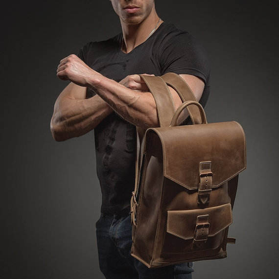 ALW Large Capacity Vintage Genuine Leather Backpack Zipper Durable Waterproof Cover Portable Office Daily Use Cotton Lining-Made