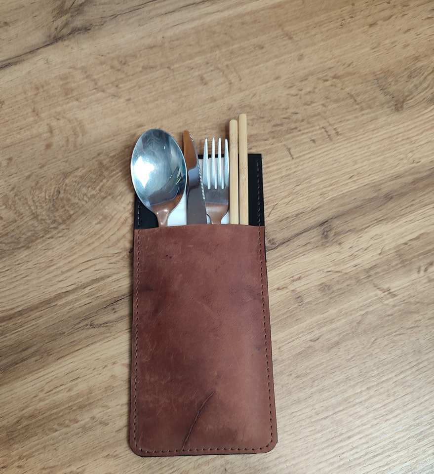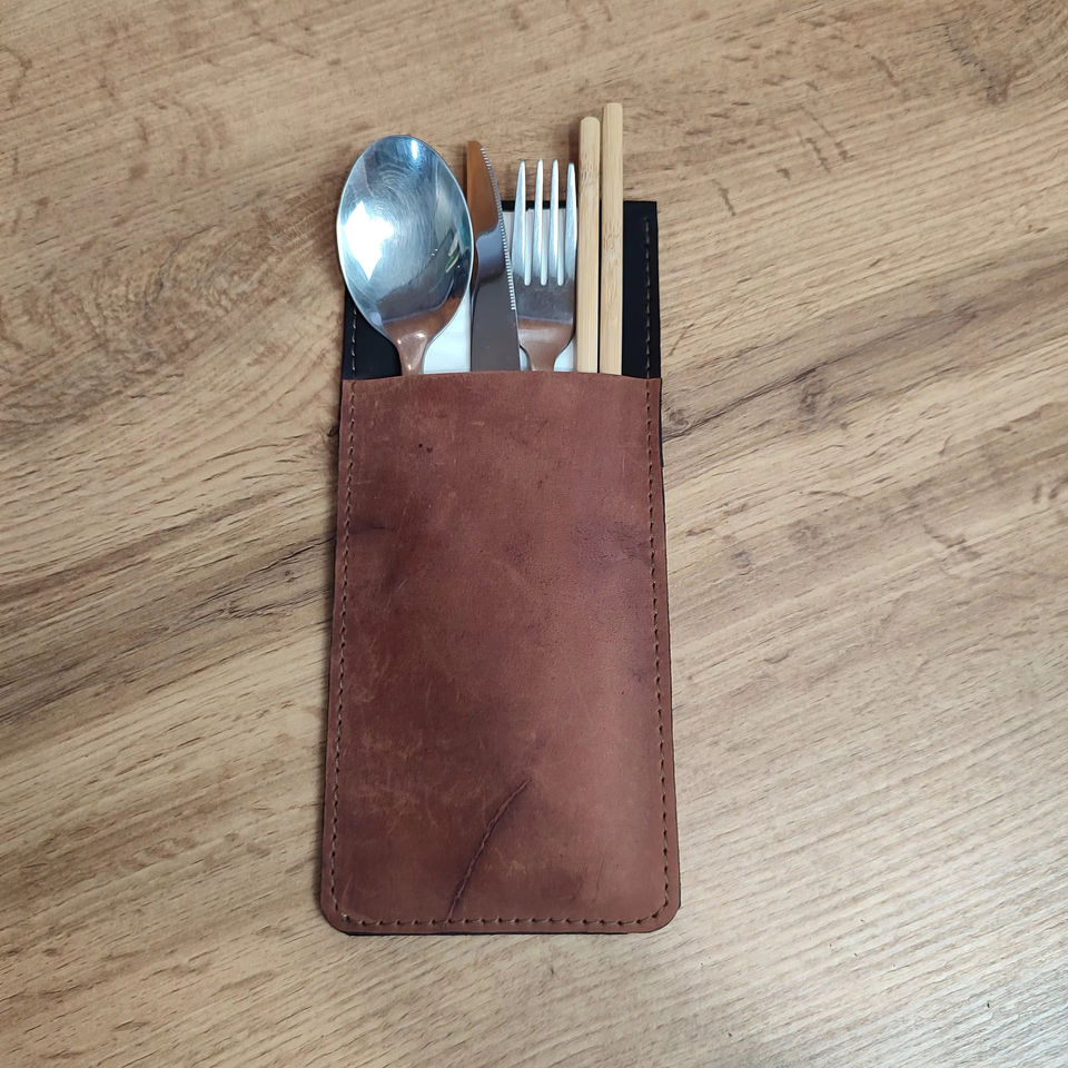 ALW Leather Cutlery Bag Restaurant Cutlery Holders Case Steel Cutlery Holder Pouch Utensil Holder for Table OEM ODM