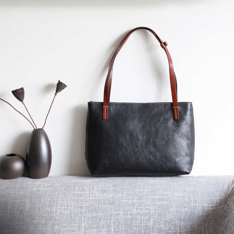 ALW Women's Stylish Genuine Leather Tote Shoulder Bag Large Capacity Zipper Open Drawstring Chains for Work Office Daily Use OEM