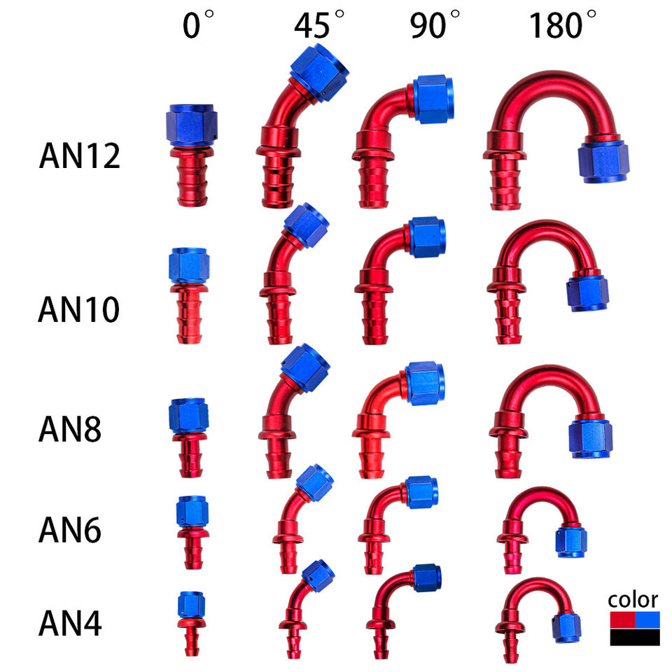 AN4 AN6 AN8 AN10 AN12 Car Aluminum Alloy Swivel Straight 45/90/180 Degree an Fitting Swivel Fuel Line Hose End Fitting