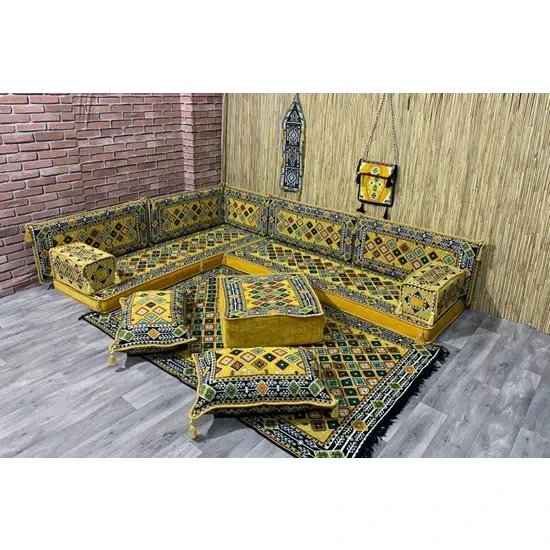 ANATOLIA OTTOMAN Double Set Ottoman Afghan Arabian Bar Nomad Yoruk Oriental Corner Sofa Set Polyester/Cotton Removable Washable