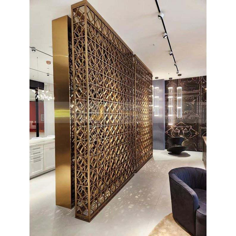 ANN2168 Modern Washable Coated Multi-Functional Durable 304 Stainless Steel Gold Custom Room Divider Screen Partition