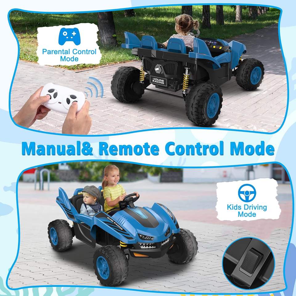 ANPABO 24V Ride Shark Car Toy W/Remote Control 2 Seater Truck Spacious Legroom 4x75W Motors LED Headlight ABS Plastic Made