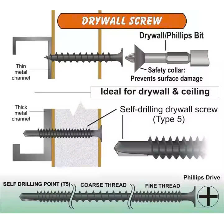 ANSI Standard Drywall Screws 40mm Zinc Plated Tapping Screws M3.5 C1022 Black Oxide Black Phosphate Coating Rust-Resistant