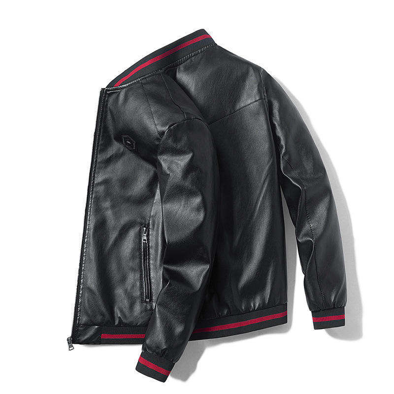 ANSZKTN New Men's Fall and Winter Stand Collar Motorcycle Tooling Trend Fashion PU Leather Canvas Front Logo Jackets