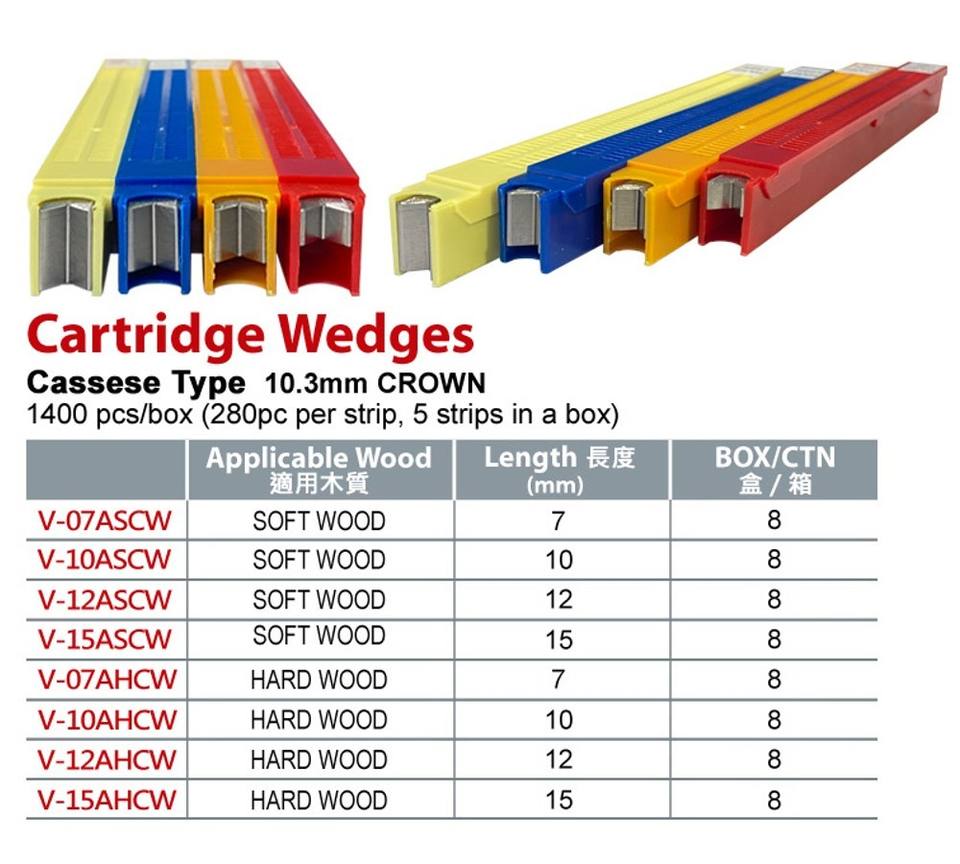 APLUS V-07AHCW-1400 Steel Smooth Shank Wedge Nail Cartridge 7mm Length for CASSESE Machine UNI Type Underpinning Hard Wood