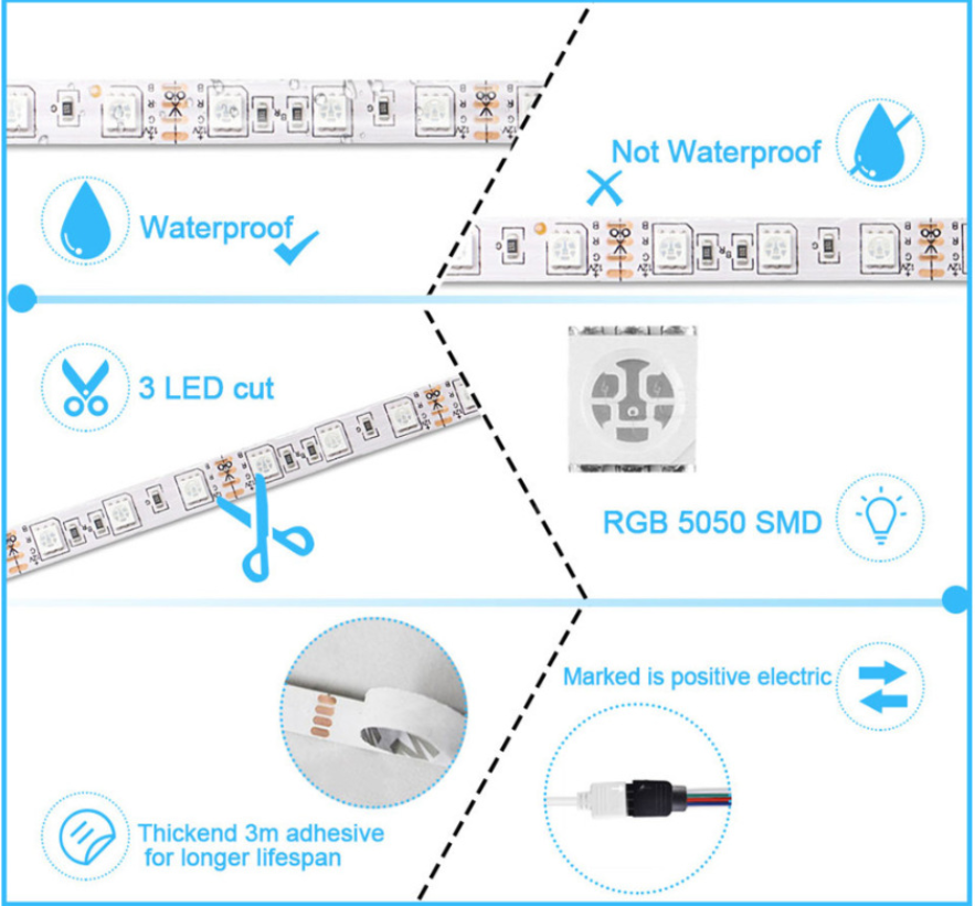 APP Smart Control RGB LED Strip Light 5050 SMD DC24V Silicone Gel Coated Wi-Fi CRI90 Garden Patio