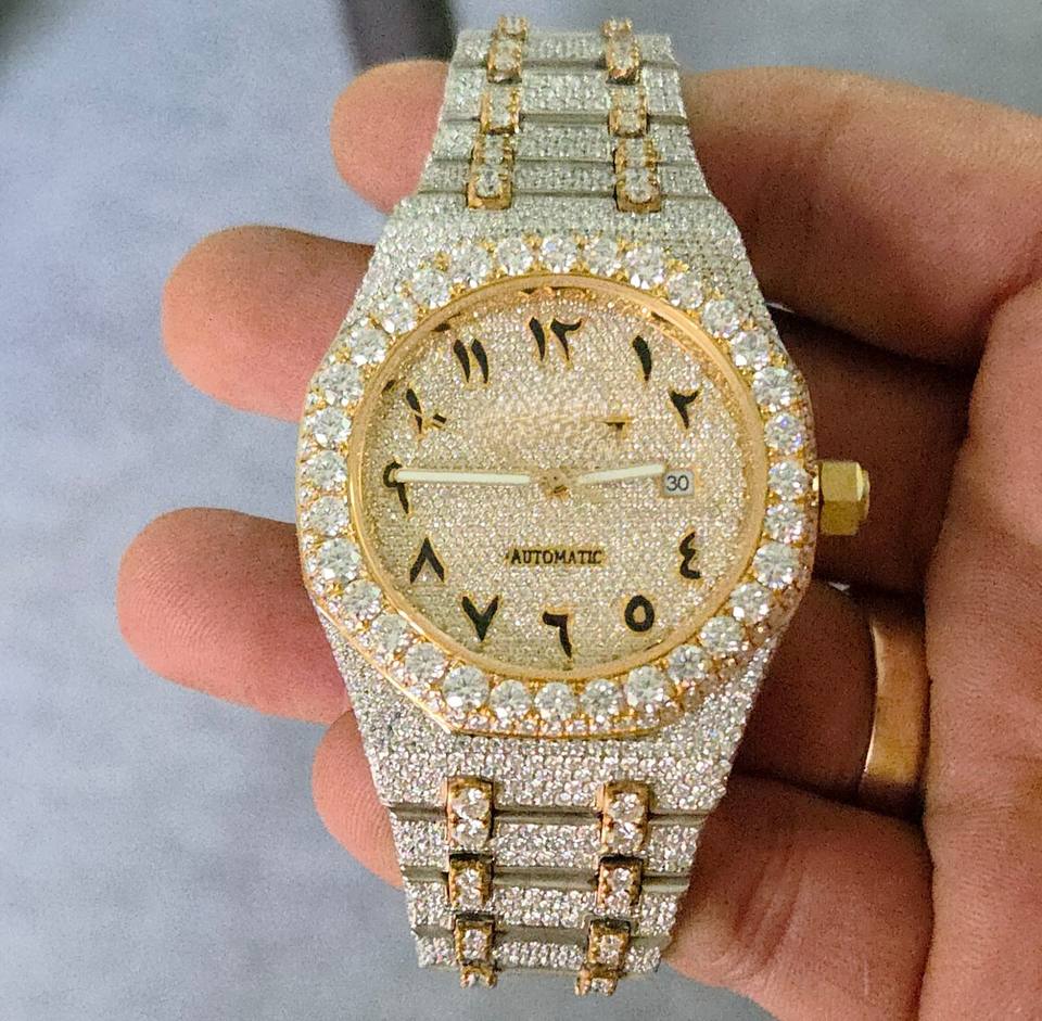 APYellwo Customized Color Moissanite Diamond Quartz Stainless Steel Luxury Hip Hop Iced Watch Japan Automatic Glass Pointer