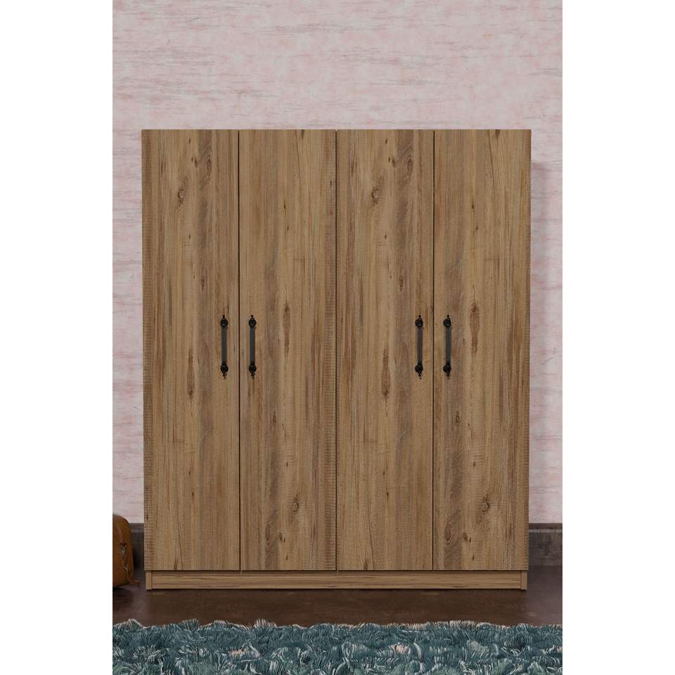 ARENA Modern 4-Door Wardrobe Atlantic Pine with 2 Hangers and 6 Shelves for Bedroom or Hospital Clothes Storage