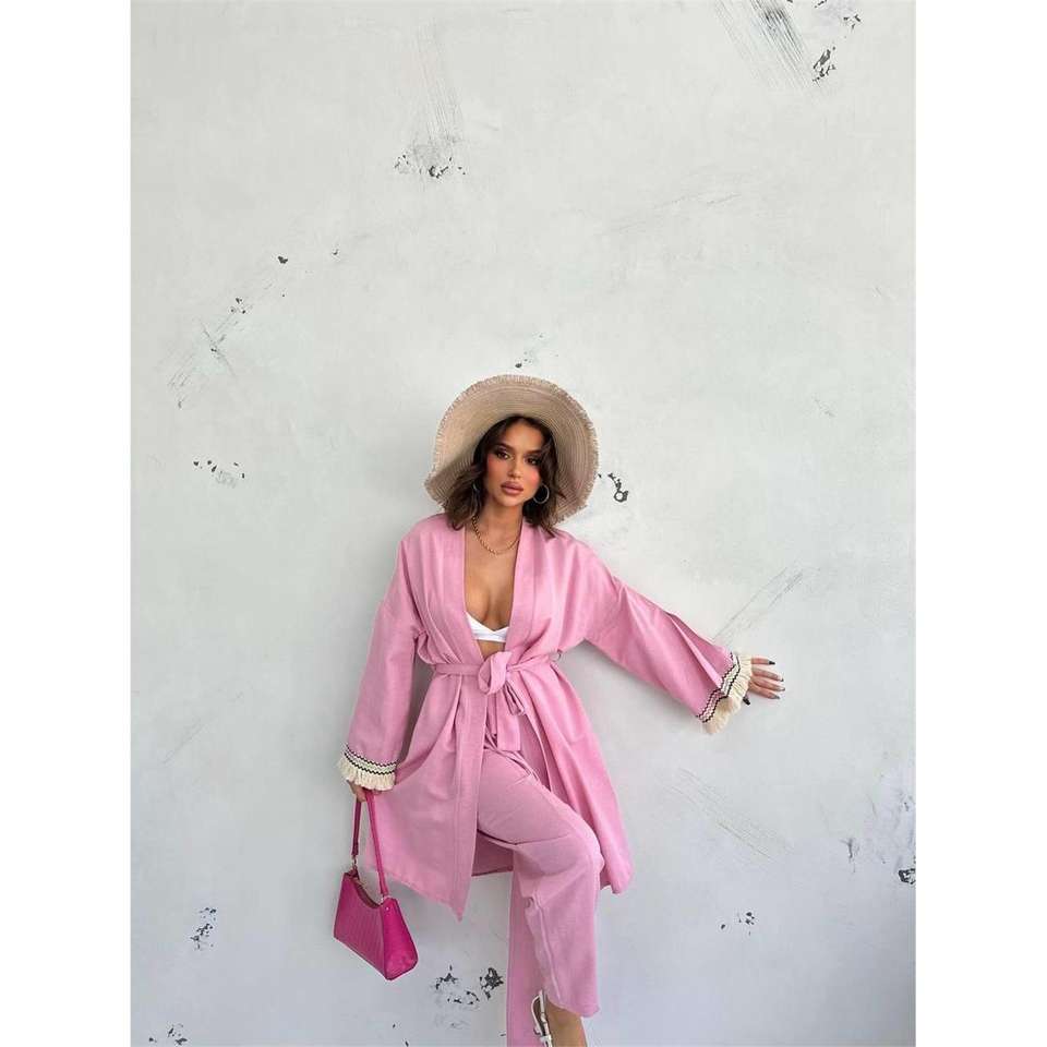 ARM Women's Pink Two-Piece Set Floral Kimono with Fringe XS/XS Above Knee Length Short Tops Club Outfits Min. Order 3 Pieces
