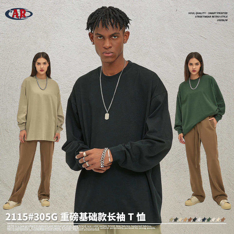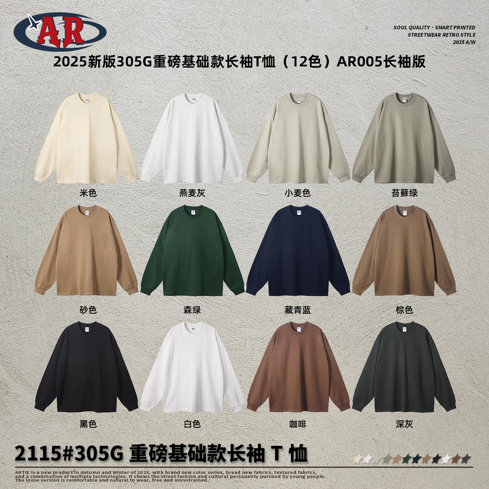 ARTIE 2025 Autumn/Winter Collection Men's Wear Brand Heavy 305g Loose Long Sleeve T-shirt 12 Colors European American Pure