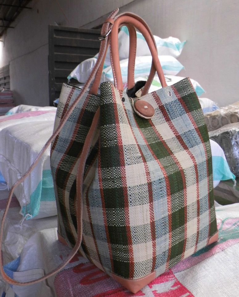 ARTIMADA Lady-Style Beautiful Woven Raffia Rabane Flap Long Strap Geometric Pattern Two String Cotton Straw Messenger Handbag