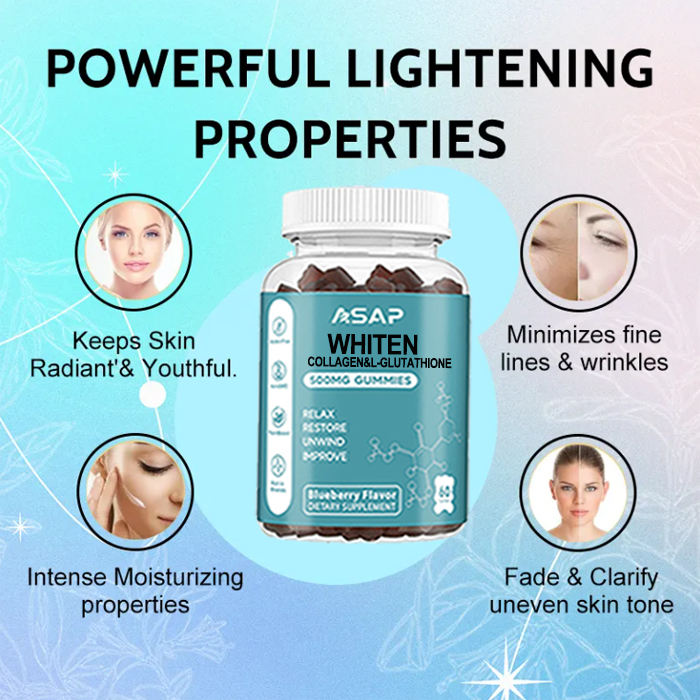 ASAP 100% Natural L-Glutathione & Collagen Whitening Gummies-Food Grade Halal Certified Herbal Supplements for Even Skin Tone