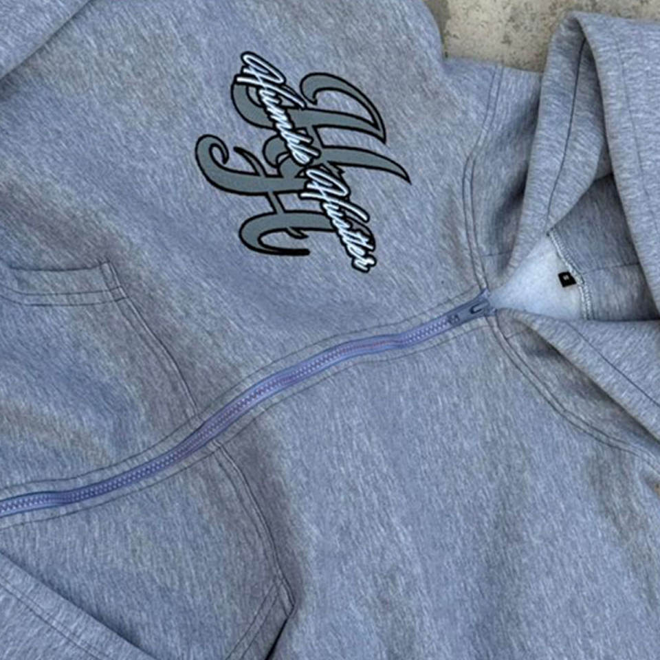 ASISTO INDUSTRIES Comfortable Zip Hoodie Embroider Logo Heather Grey Men Women Cotton Fleece Customised Jogger Pants Two Piece