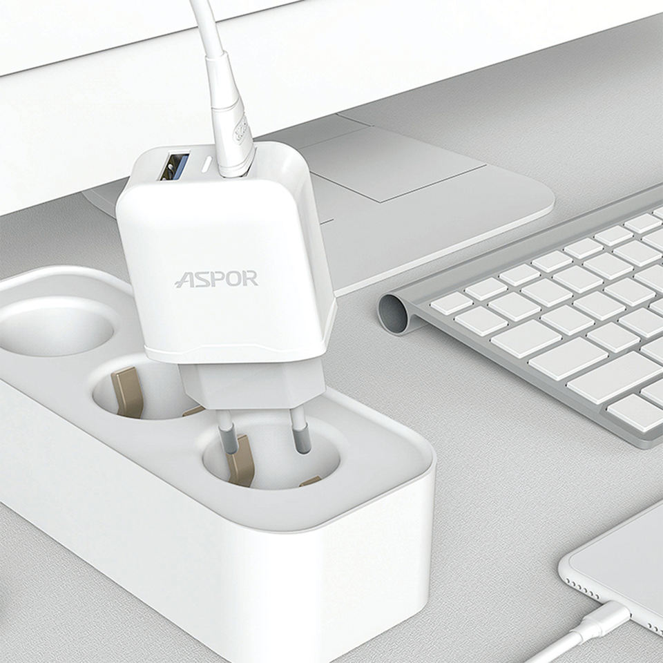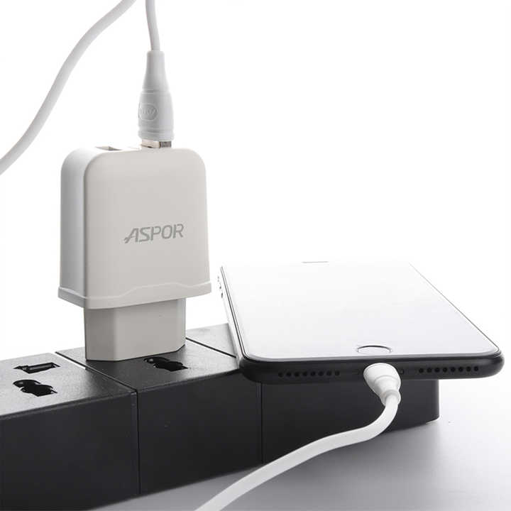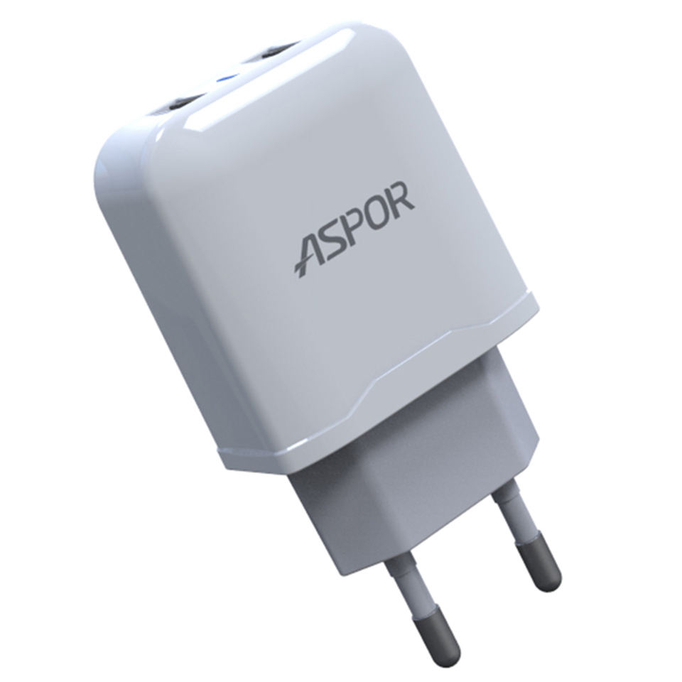 ASPOR Cheap Price Dual USB Port 5V 2.4A 12W Travel Wall Charger UK US EU Plug Home Use Electric PD Mobile Phone