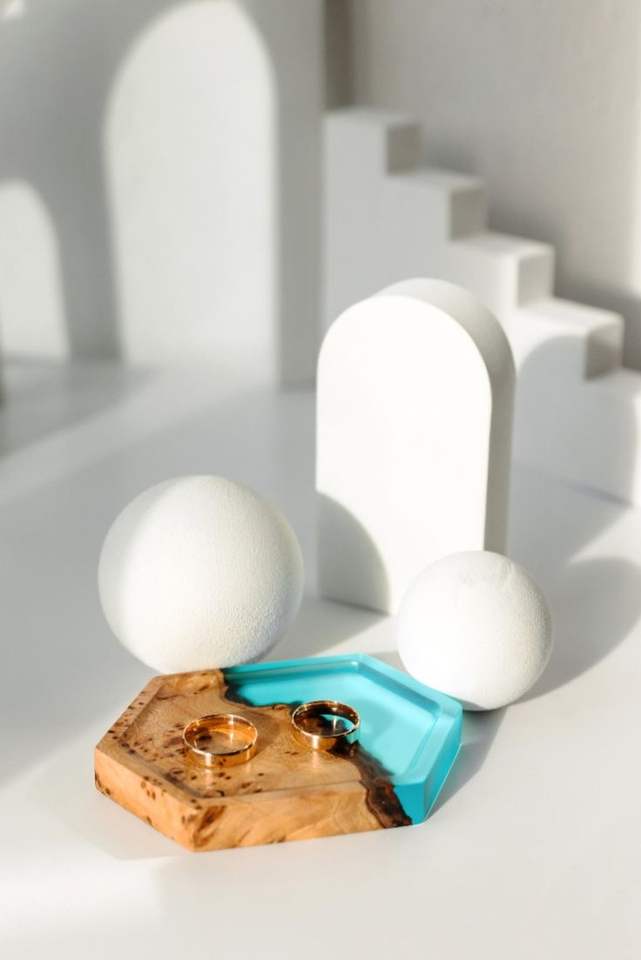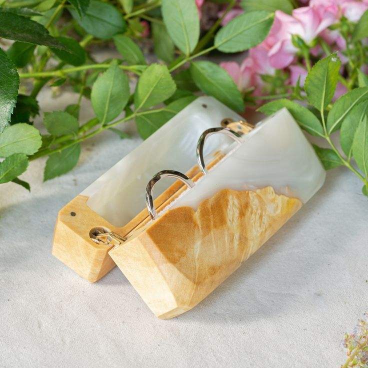 Handmade Rustic Wooden and Resin Double Slot Ring Box Unique Engagement Proposal Wedding Jewelry Box Wholesale