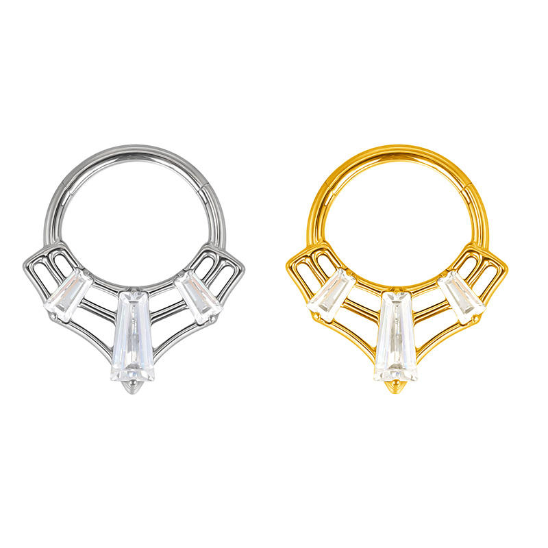 ASTM F136 Titanium Cobweb Segment Ring 3 Baguette Asscher Cut Zircon Center for Children's Weddings Engagements Body Jewelry