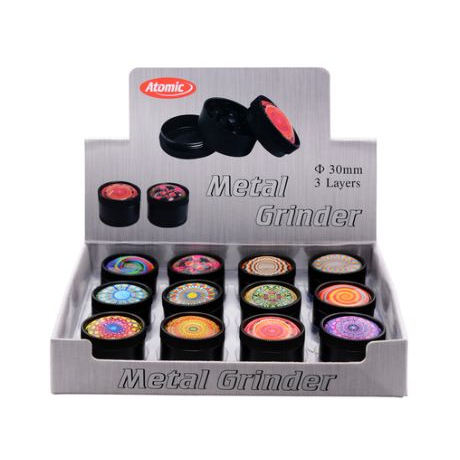 AT-Metal ø30mm Psycho Modern Glass Grinder Zinc Alloy 63mm Diameter 40-55mm Sizes for Accessories Classic Packaging Box Included