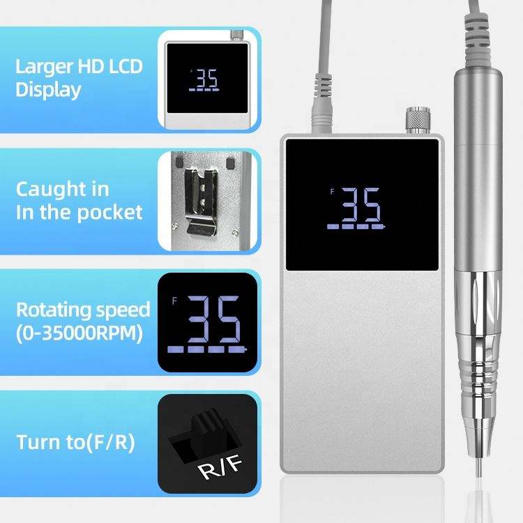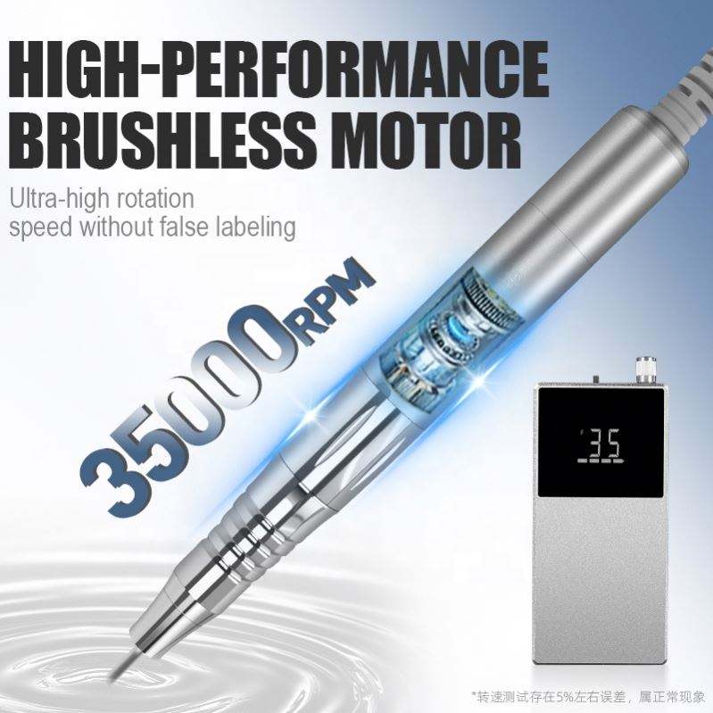 AT-NDB-012 Sander Rechargeable Nail Art Drill Machine 35000RPM Brushless Manicure Polishing Salon Supplier Equipment with Bits